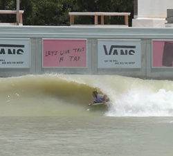 Brooke Mason tearing it up at The Wave wave pool in Bristol during an Expert Barrels floodlit evening session.