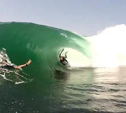 A classic “Shorebreak” day shot a couple of years ago, featuring the local crew pulling into some offshore slabs in Copacabana, Rio. Brought to us by Igor Lamothe.